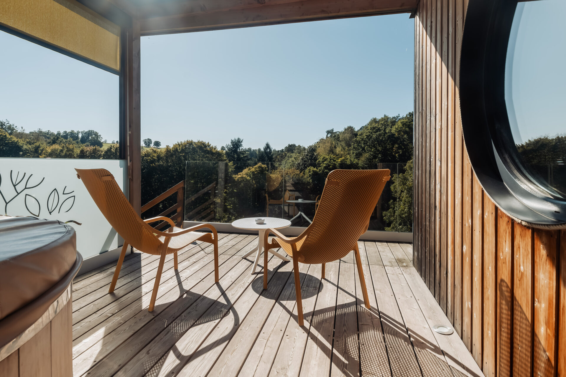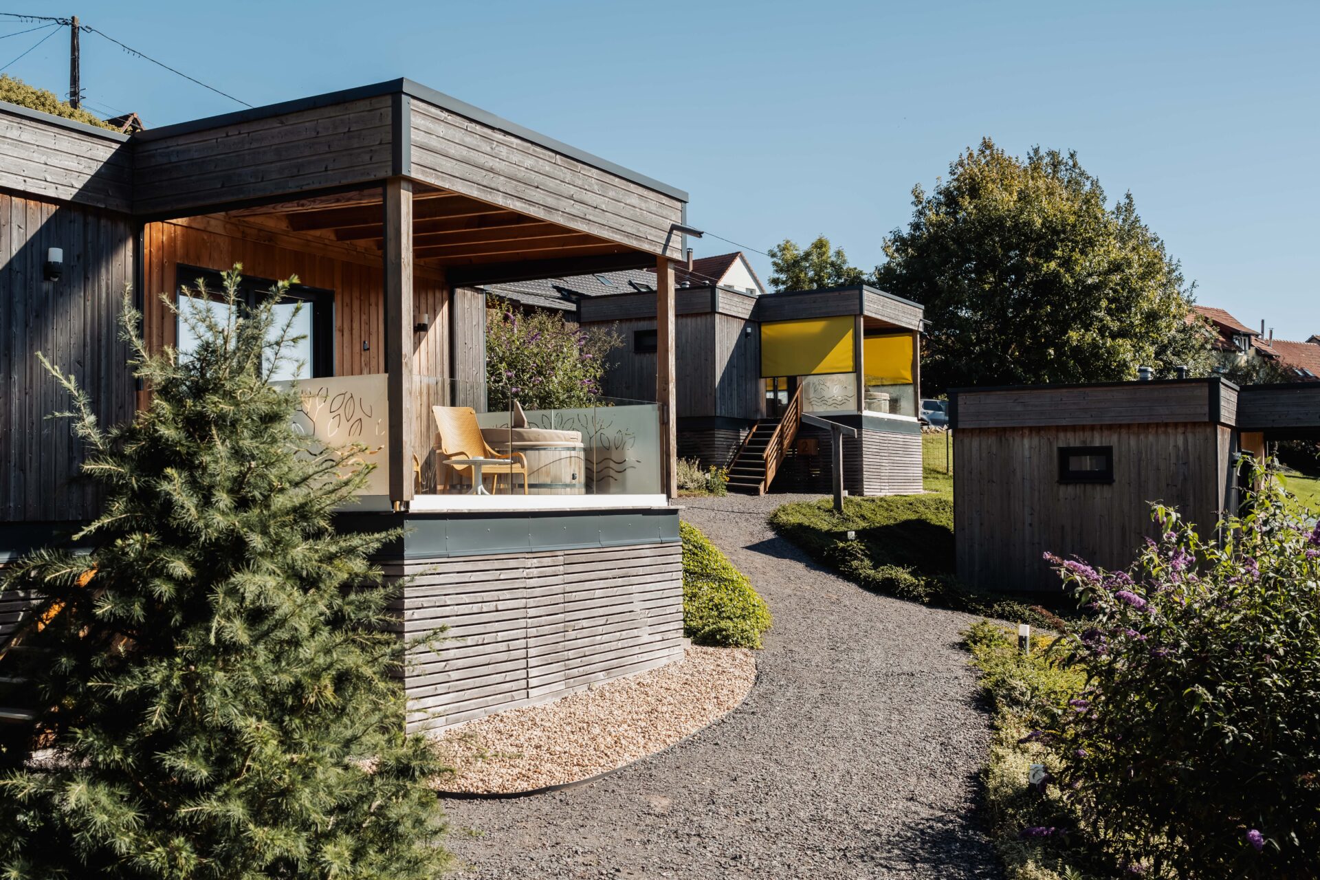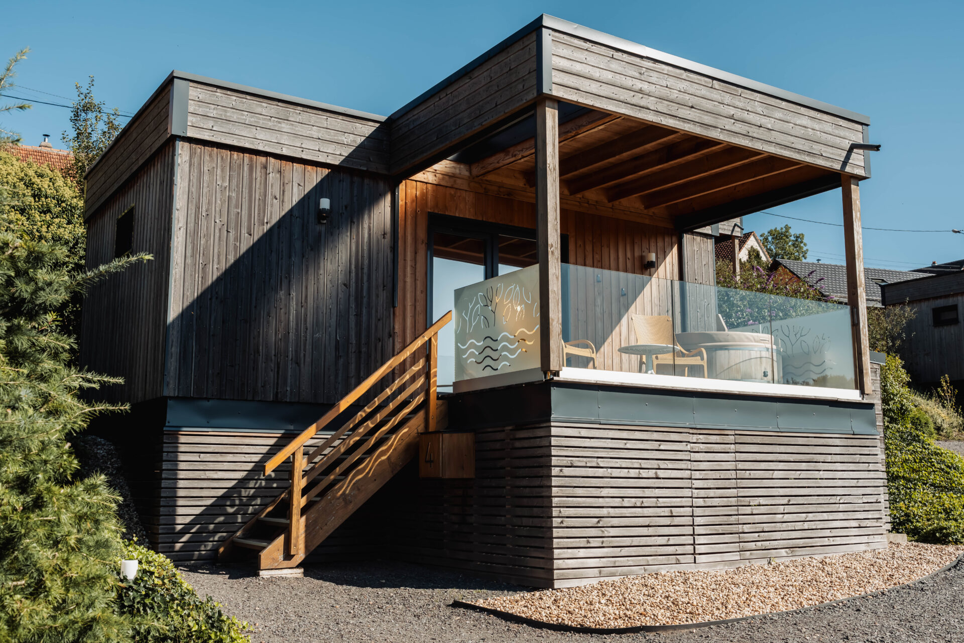 Geniet van een moment van ontspanning in je eigen chalet met privézwembad. Scandinavisch privébadverwarmd tot 39°C en biedt een prachtige, groene omgeving die typisch is voor de Zuid-Moezelstreek.